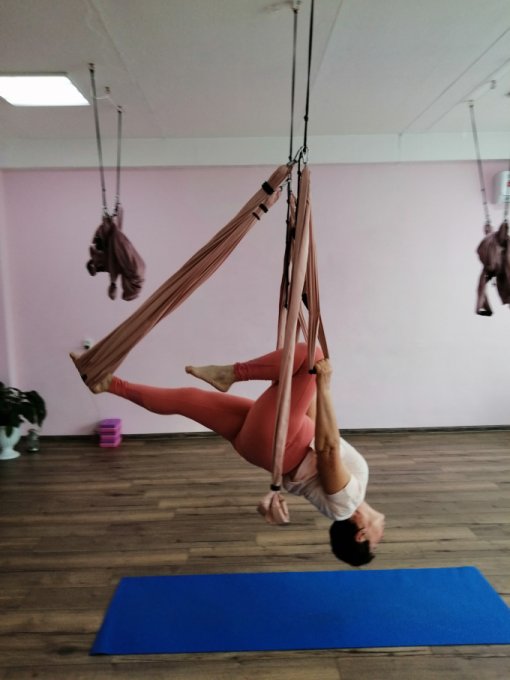 Сегодня йога в гамаках. Все как всегда: немного силовых: планки, уголок. Немного растяжки, пара кувырков: в вампирчика и шавасану. Вчера напрыгалась, повредила связки. Болит левая нога. Больше прыгать не буду.