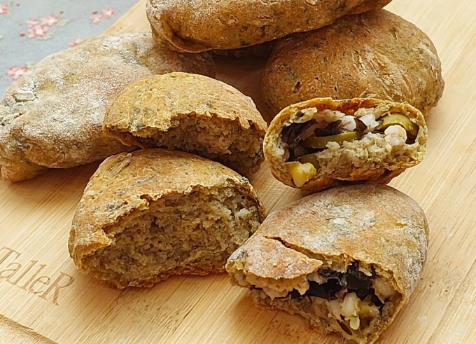 этого же теста. Начинка - перловка, грибы (древесные были в