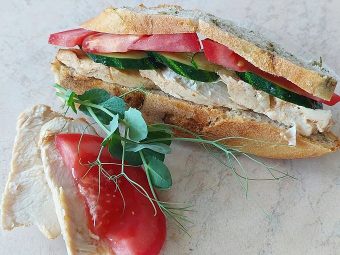 Хотелось есть. Сделала бутерброд с курицей. Вчера курицу пекла и