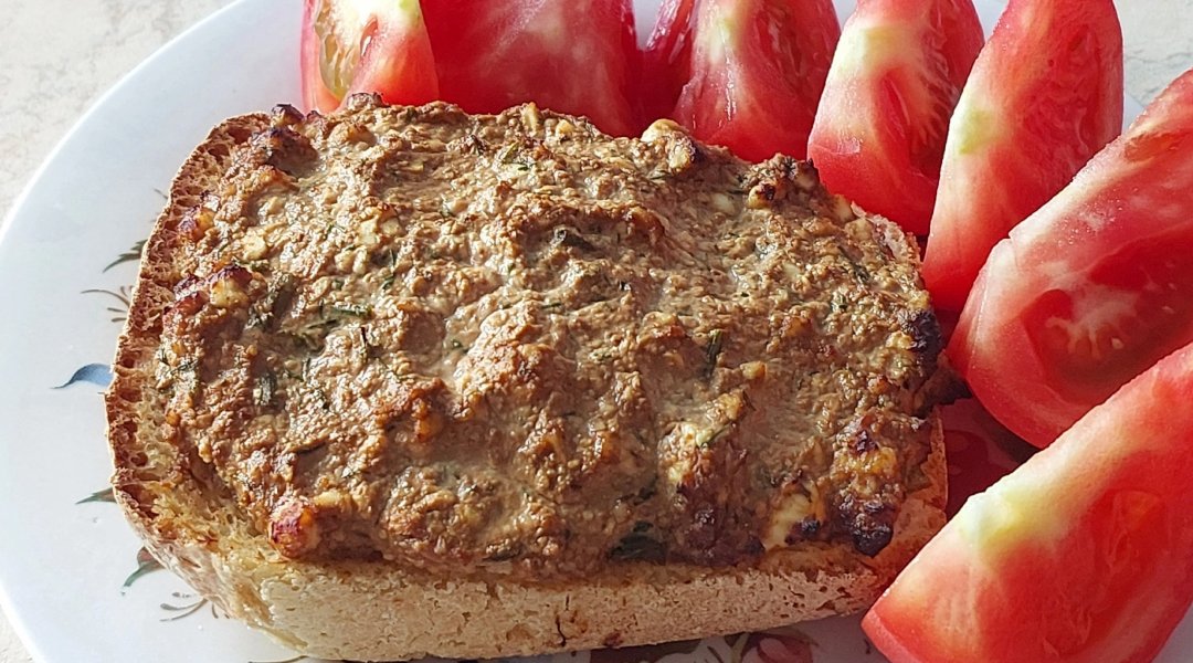 хлеб с зеленью и чесноком. А горох на подоконнике ращу. Люблю