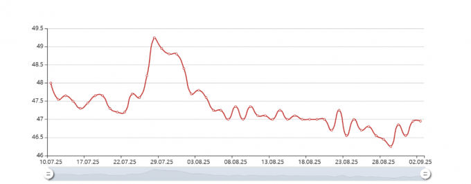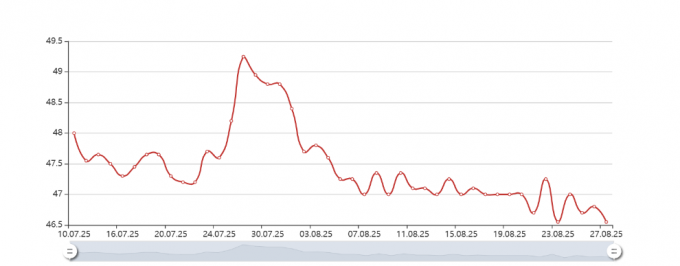 Вот график веса пытаюсь выровнять на желаемых 47.