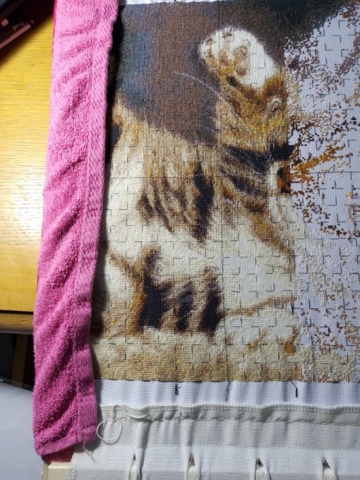 Другой метод - круговой по цветам. У меня сейчас не очень подходящее место для вышивки "парковкой", потому использую круговой по цветам. Слово "круговой" тут условное, видимо возникло из-за часто встречающегося начала вышивки от центра, но начало не принципиально, можно начинать с любой точки, суть в том что вышитая часть наращивается ряд за радом по цветам от выбранной точки.