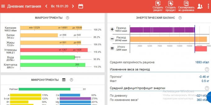 активность, значит дневник покажет дефицит или профицит за