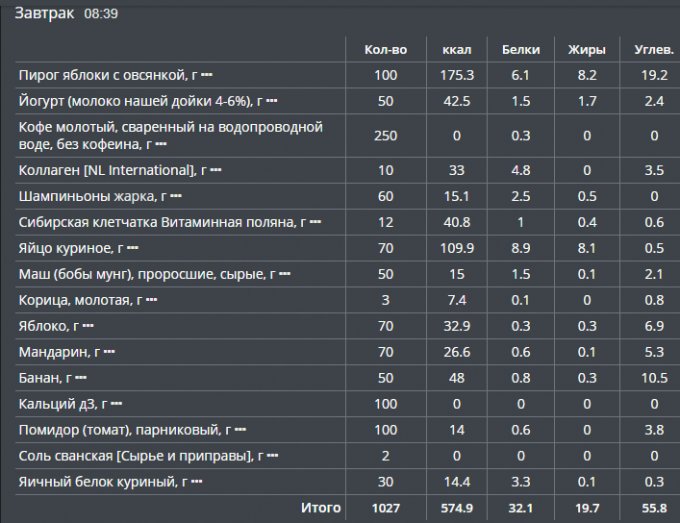 ккал. При этом завтракаю в день тренировки где-то на 600 ккал.