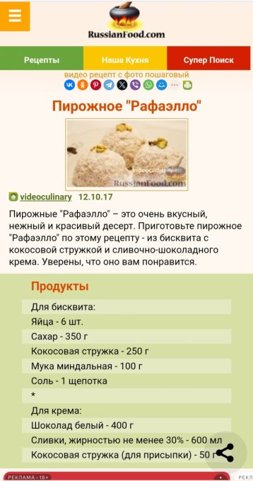 | Пироженое рафаэлло с миндальной мукой |