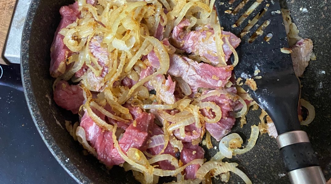 Лук нарезать полукольцами и обжарить в сливочном масле (масло можно любое) с чесноком.