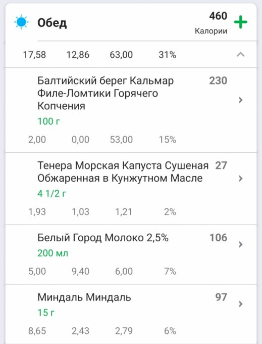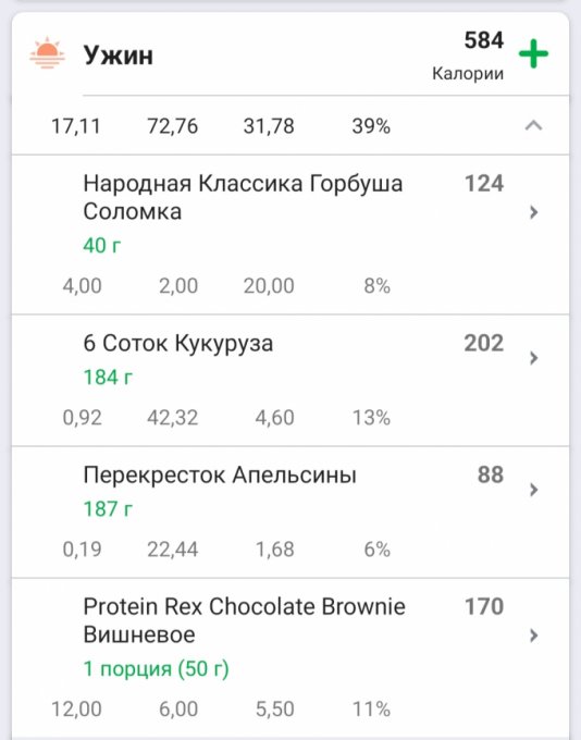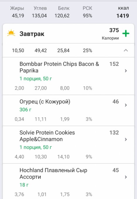 | Итого за день | 100 | 1419 | 120 | 45 | 135 |
