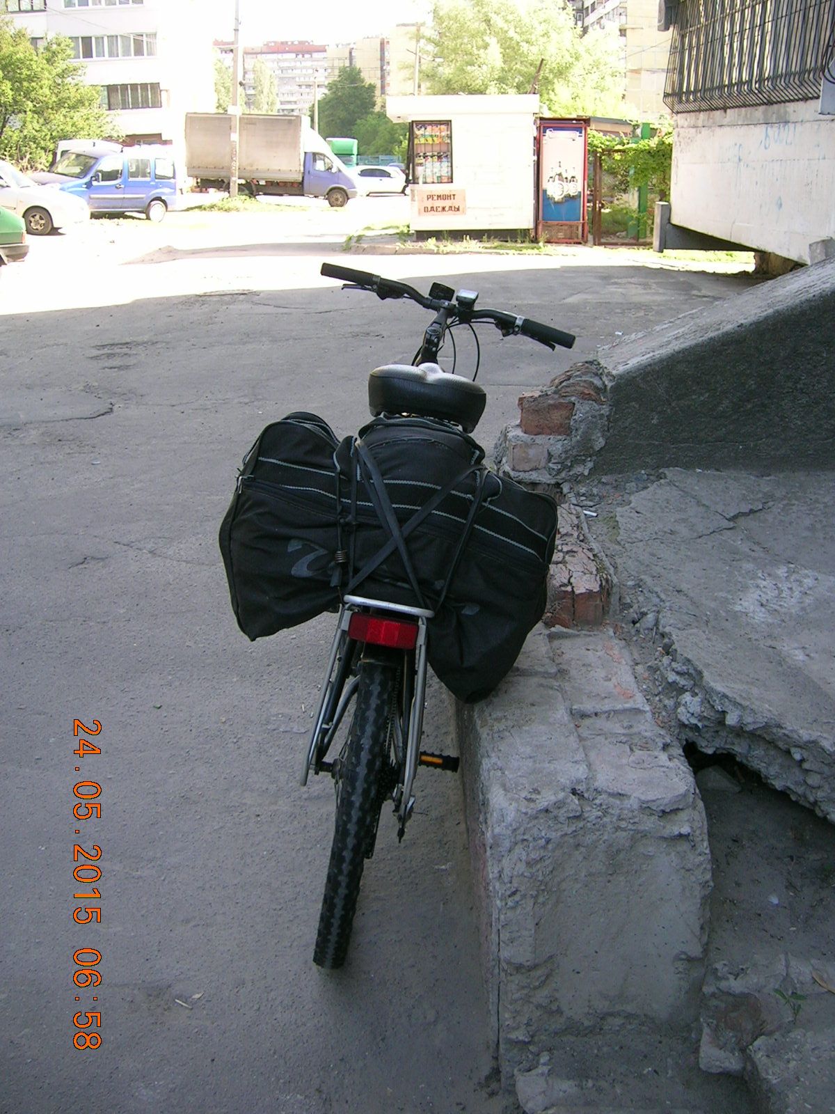 Лезу в кладовую, извлекаю свой велобаул. Ещё брезентовую самоделку