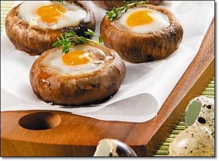 В другую часть шляпок разбить по перепелиному яйцу.Посолить и