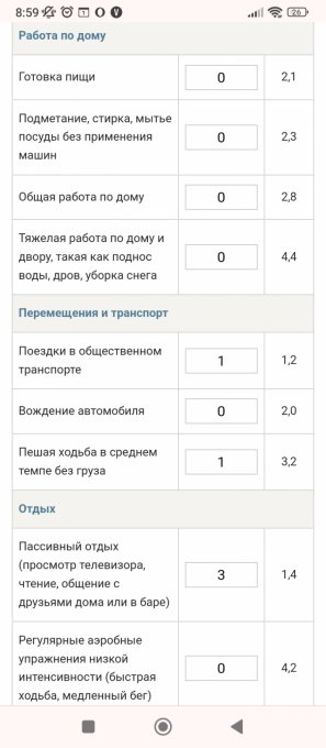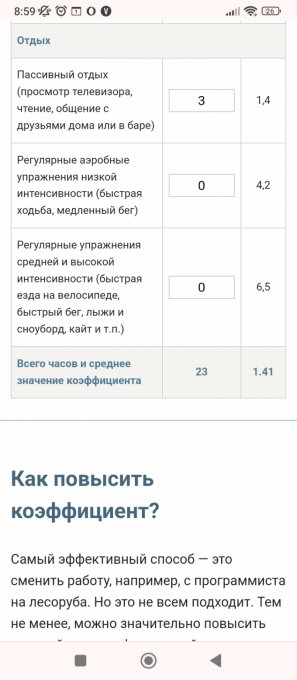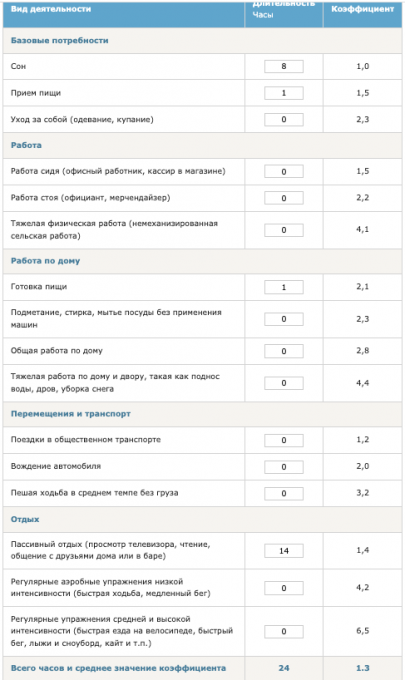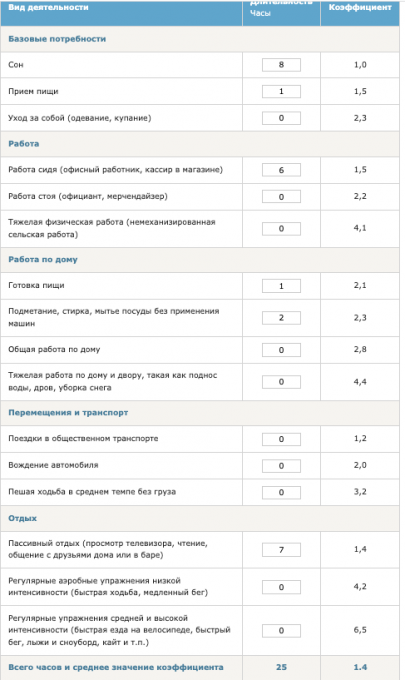 (умственных и физических) за день. Коэффициент 1 — только у сна.