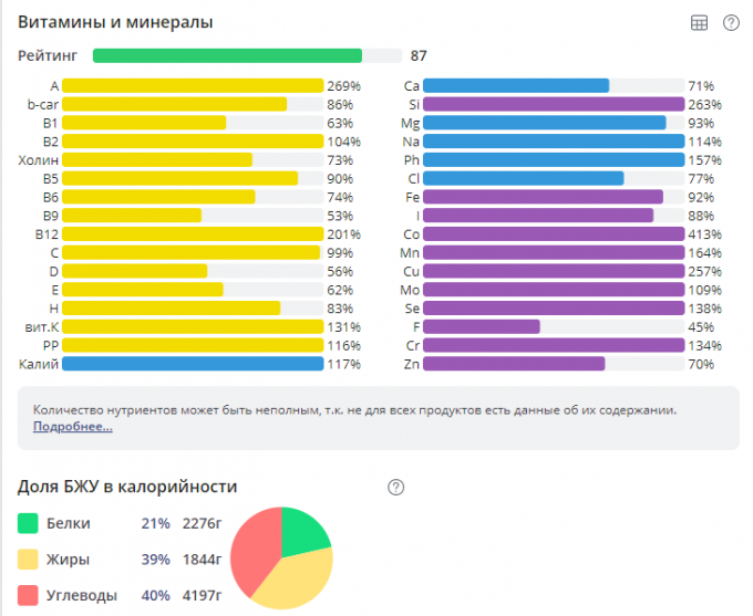 | Кол-во | Калории | Белки | Жиры | Углеводы | |