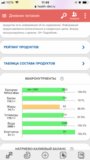 Чтобы увидеть отчеты по питанию и график веса, необходимо войти.