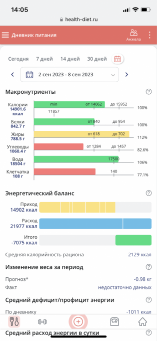 | Итого за день | 3384 | 1800 | 105 | 80 | 161 |