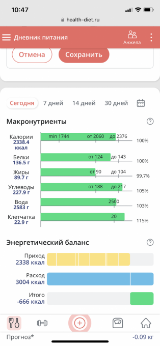 Чтобы увидеть отчеты по питанию и график веса, необходимо войти.