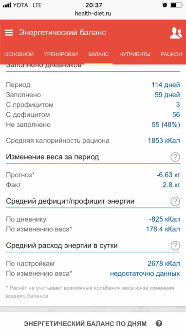 меня я энергетический баланс под макронутриентами и ничего в блоке