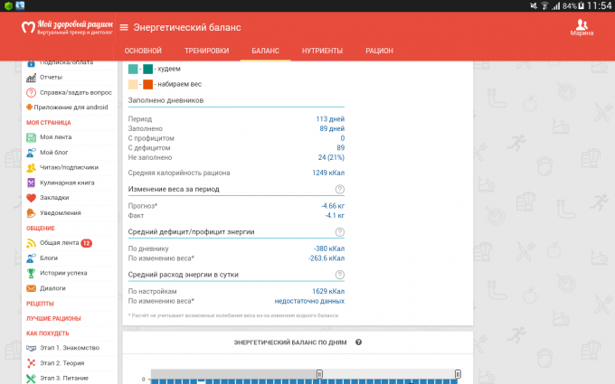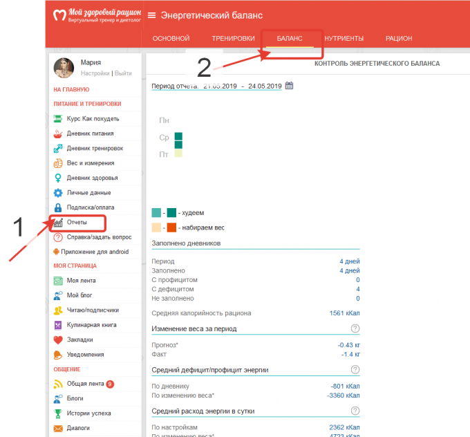 планируемый отвес. Все данные берем из отчета из дневника питания,