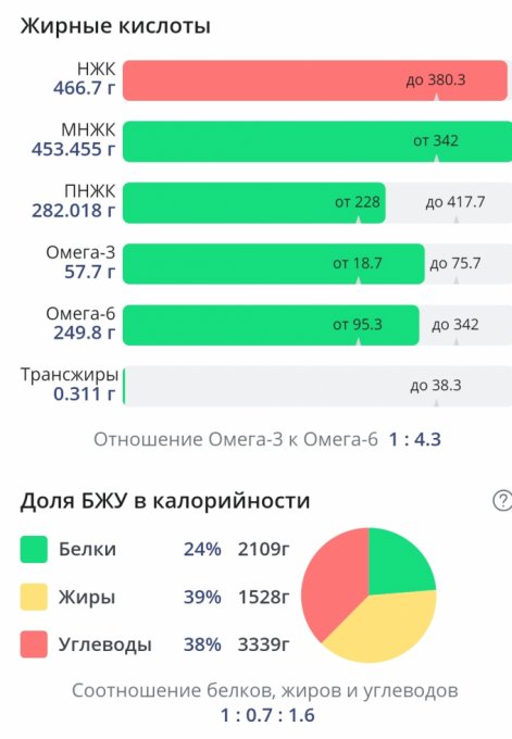 элементов питания при минимуме калорий. Пока только нжк выше нормы