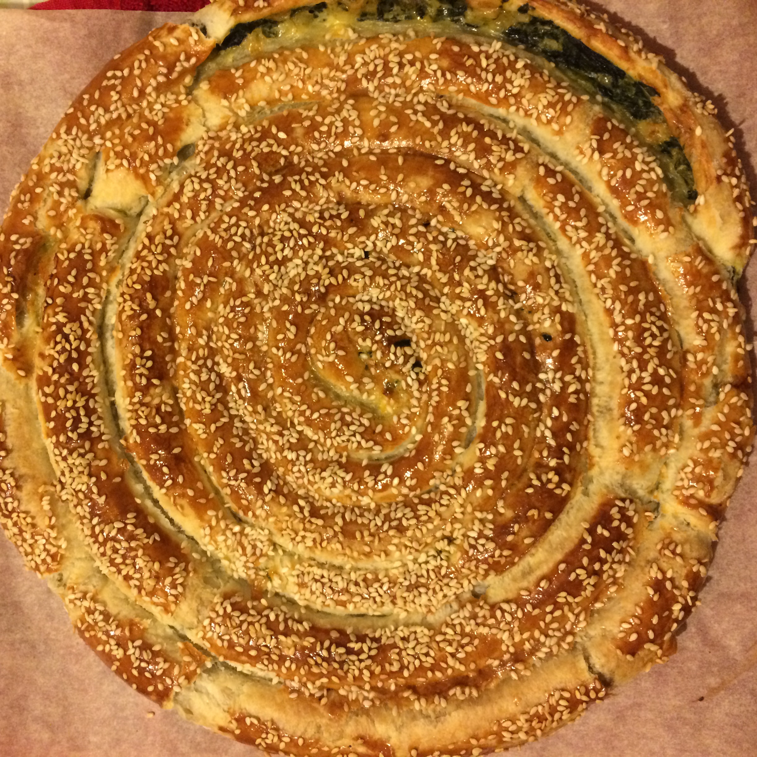 поделиться рецептом слоеного пирога со шпинатом. Необычную форму