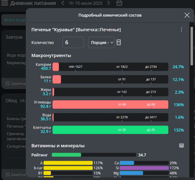 | Кол-во | Калории | Белки | Жиры | Углеводы | |
