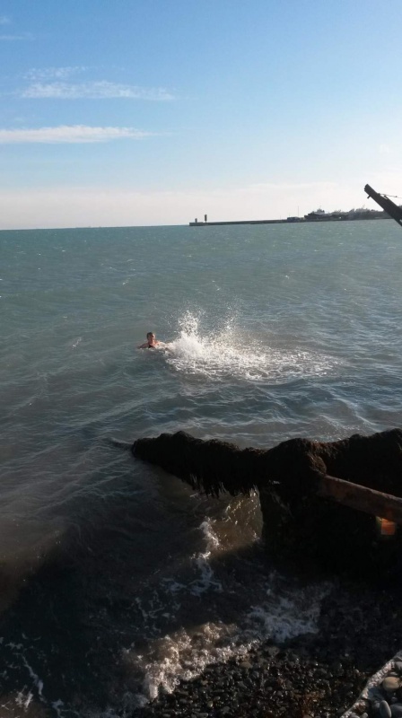 15.10.17. Хорошая прогулка с подругой утром с 9 до 13 по набережной Новороссийска, с купанием в море...