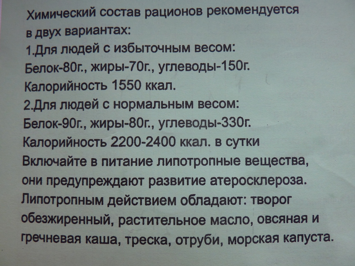 Добавил рекомендации на обороте санаторских меню (а то аккумулятор