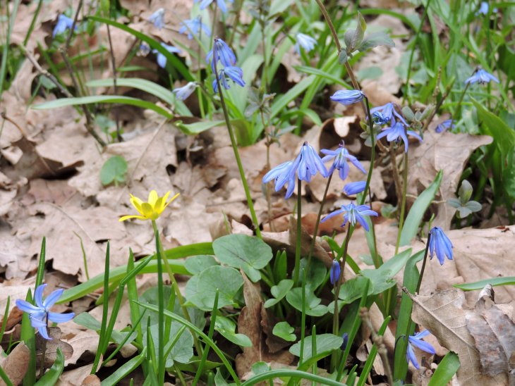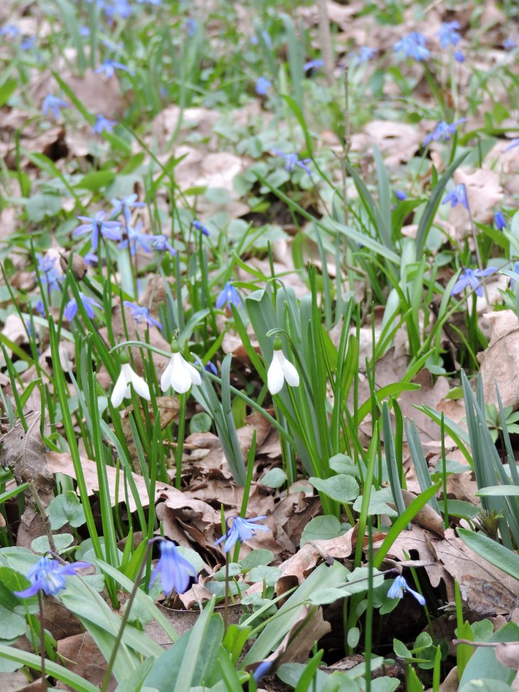 подснежников,затем они меняются с пролесками,мы сегодня попали как