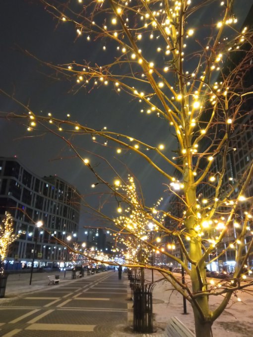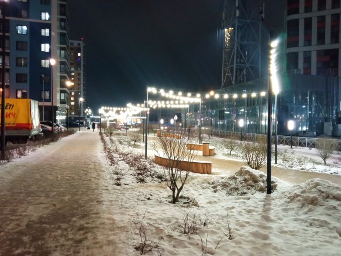 Недавно гуляла у нас по Мурино, пока дети занимались бальными танцами. Стараюсь в день проходить не менее 18 тыс шагов, в среднем 25, бывает 32... Обратила внимание, что новогодние украшения на улицах ещё остались.