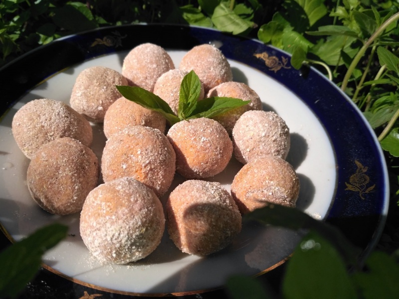 мускатным орехом (специя) обваливал в кунжуте. В том моем