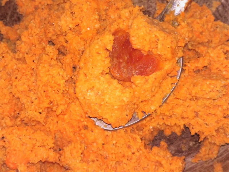 из коричневой гречки ,сырой свеклой, внутри черносливом с