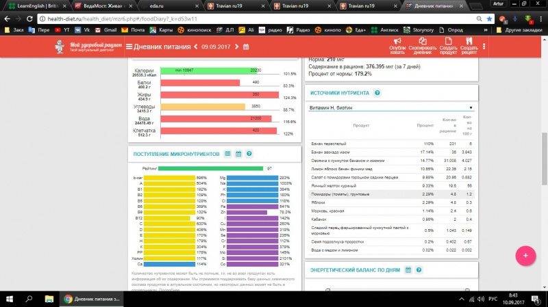 Все витамины минералы и тд на 95% в среднем за неделю по