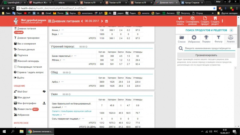 которые делал. У меня рацион очень сбалансированный, продуманный.