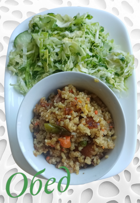 Салат - молодая капуста , огурец,зелень, подс.масло