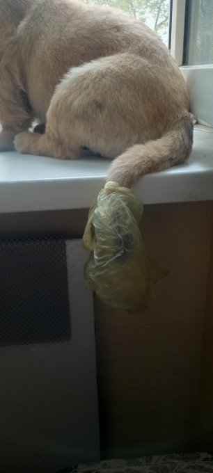Не осуждайте , остатком своей краски - покрасила Чарлику кисточку на хвосте .
