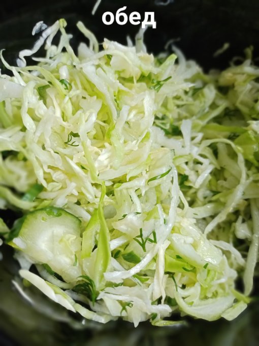 | Салат - молодая капуста , огурец,зелень, подс.масло |