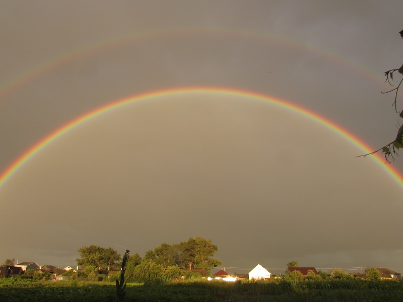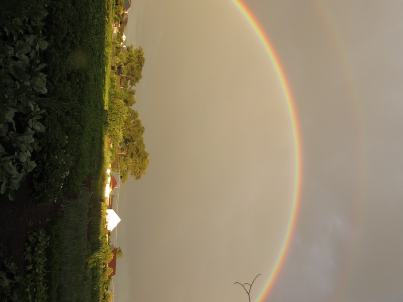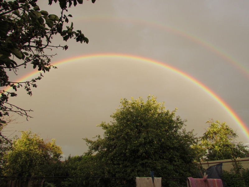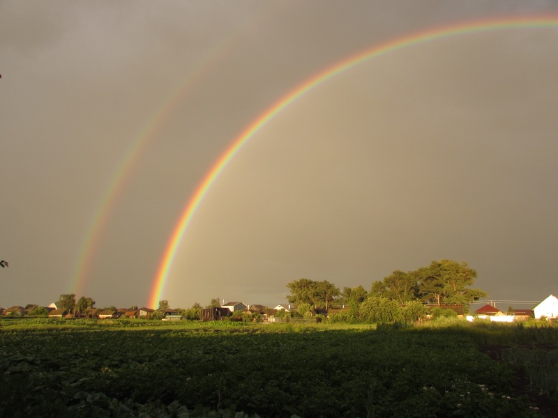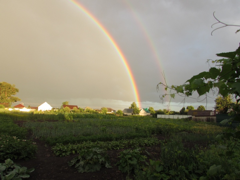 пасмурно, но тепло. К вечеру стал накрапывать дождик и над огородом