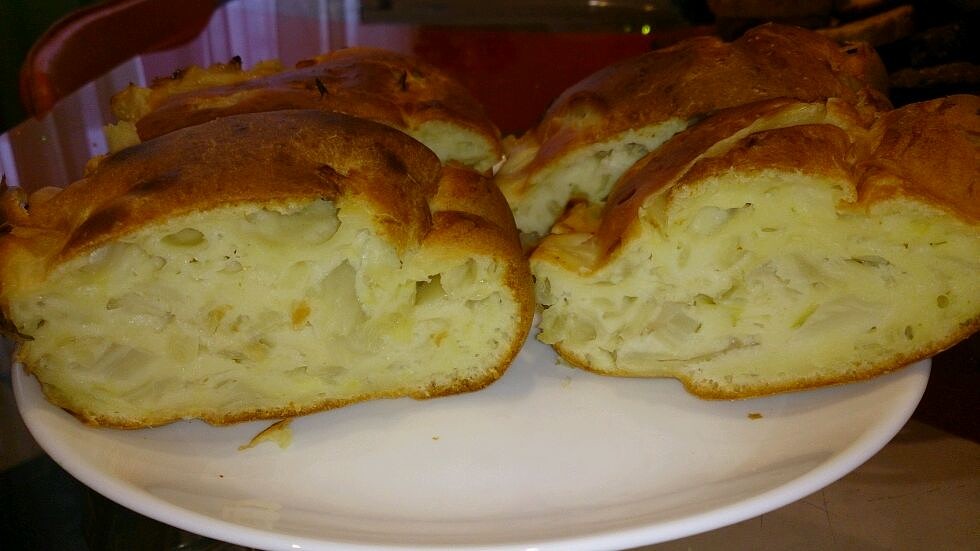 Сегодня испекла, замечательный, вкусный и главное для меня очень быстрый в приготовлении пирог. Ах, да еще и калорийность хорошая.)))))) Яйца взбить с солью, разрыхлителем. добавить 5 ложек сметаны, 6 ложек муки. Получаем жидкое тесто. Капусту шинкуем, перетираем с солью. И по желанию либо добавляем в тесто сырой, или как я делала немного потушила с водичкой, до испарения жидкости(можно добавить немного растительного масла, я обошлась без него). Затем в приготовленную посуду для выпекания наливаем немного теста, добавляем капусту, заливаем оставшимся тестом, чтобы капустка утонула в тесте. Ставим в разогретую до 180 гр. духовку на 30-40 минут. И вот , что получилось у меня!!!!!!
