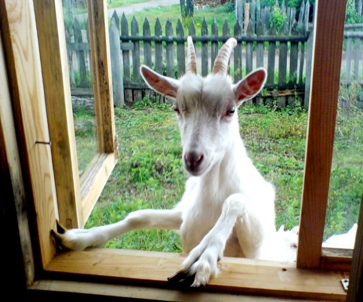 моя бабуля ( Царство ей Небесное) в год козы - козу по дому по всем комнатам проводила на счастье)))