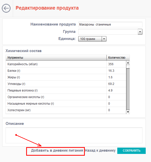 Как вставить готовый продукт в дневник питания.Спасибо.