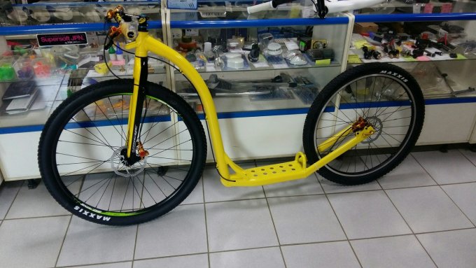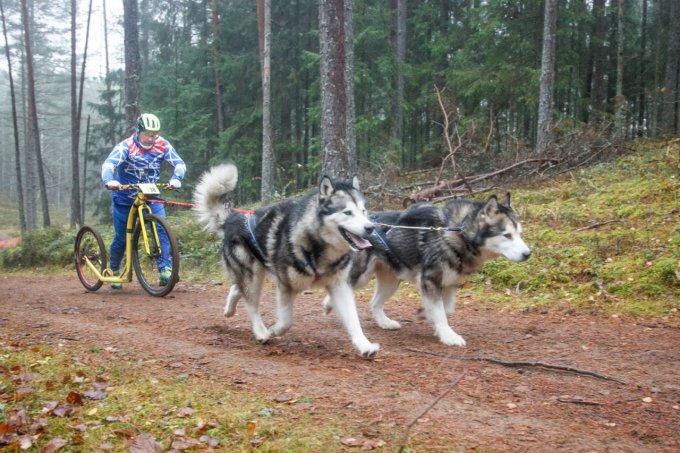 , такую же, бегут и тянут, я меня же самокат, а не велик. для упряжек 4 и более собак там 4х колесные карты. на нарте я же тоже не еду в саночках