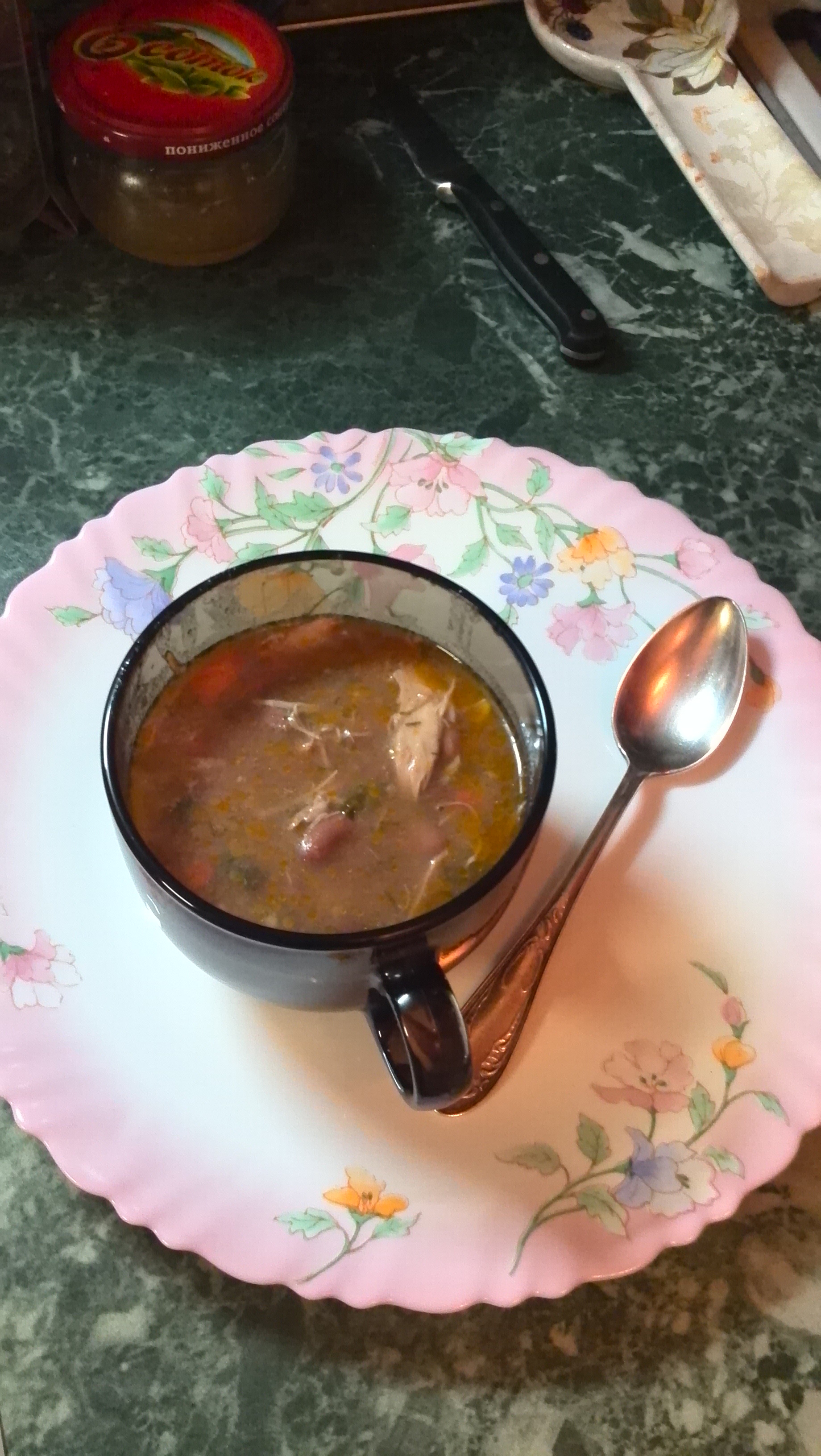 Сегодня сварила куриный суп с красной фасолью и получился он очень