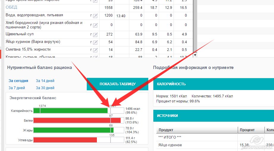 Вы наведете на полоску с калорийностью, то появится всплывающее
