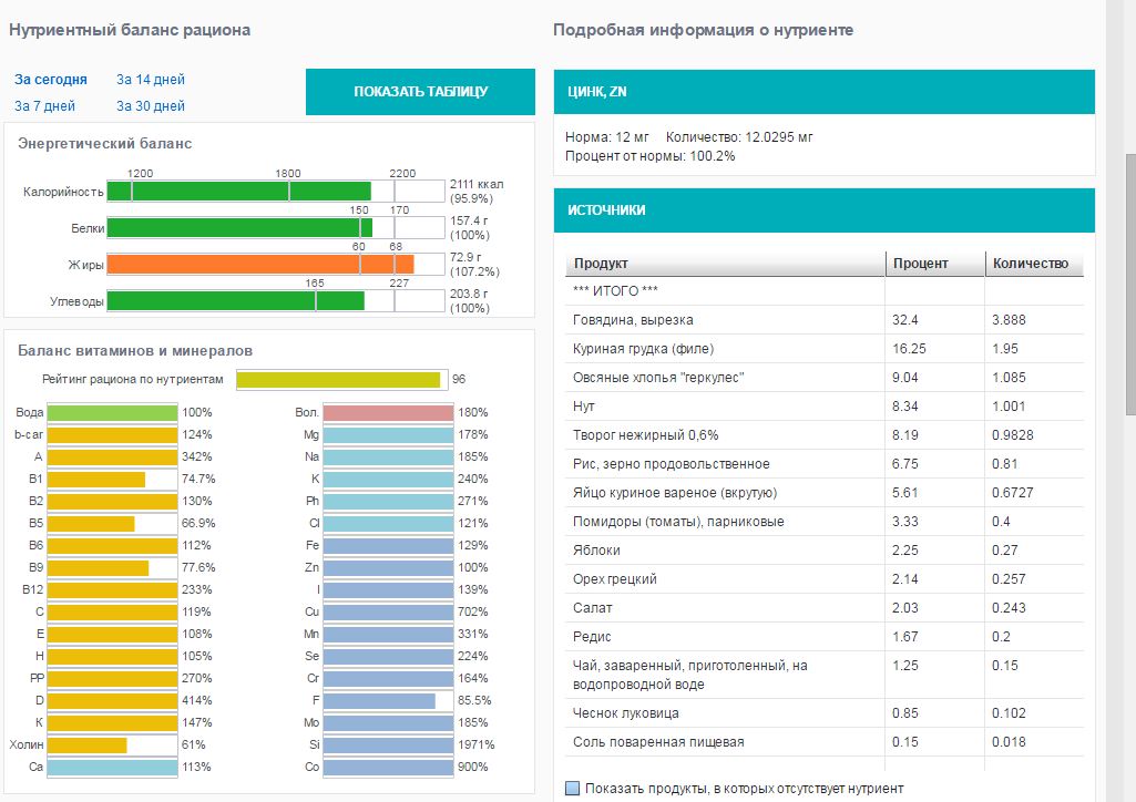 | Итого за день | 2883 | 2171.6 | 174.8 | 66.7 | 205.8 |