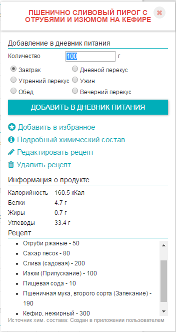 | Пшенично сливовый пирог с отрубями и изюмом на кефире | 900 г |
