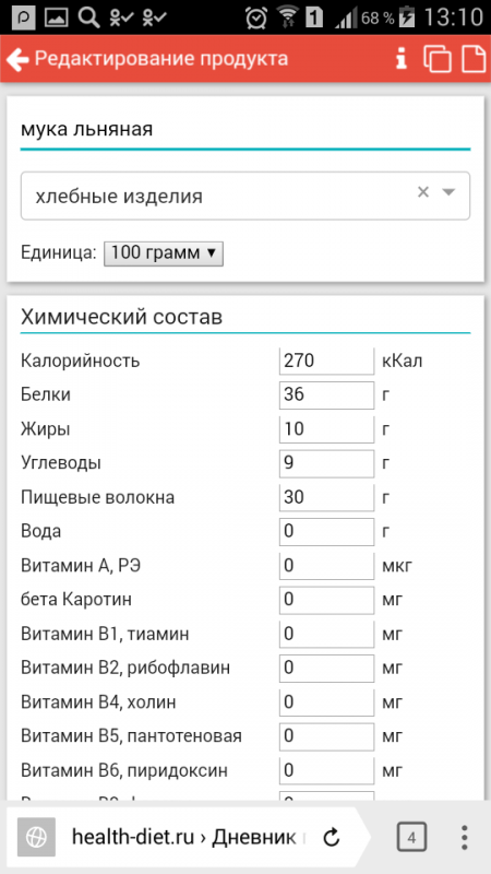| Кол-во | Калории | Белки | Жиры | Углеводы | |