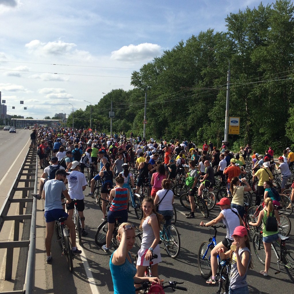 Минут за 40 мы проехали весь город, и приехали к велопразднику на
