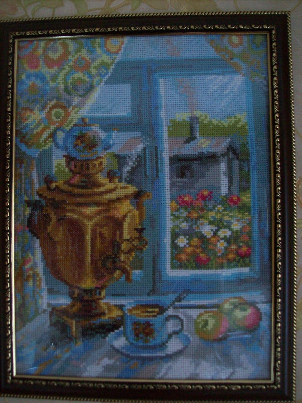 вышивкой, это труд, очень кропотливый... Ведь картинка и нитки идут