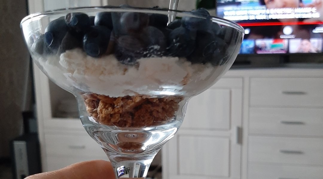 Покрошить на дно формы печерье, на печенье выложить творог, посыпать любимы ягодами по вкусу и желанию