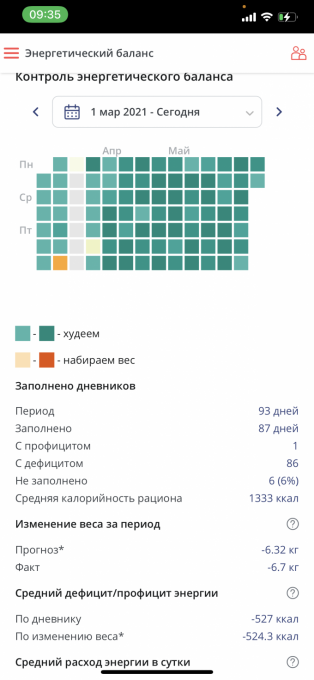 | Итого за день | 2520 | 1318 | 67 | 58 | 125 |