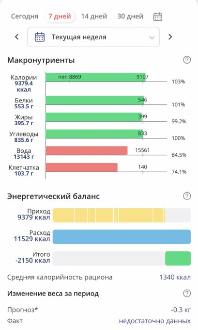 | Итого за день | 3305 | 1114 | 75 | 32 | 125 |