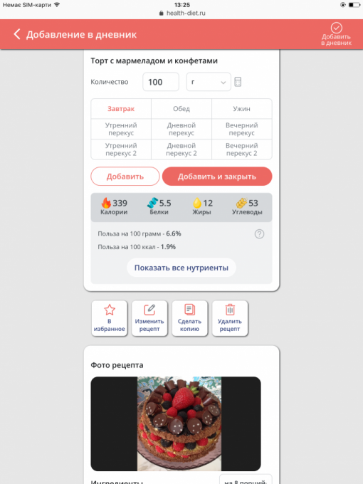 | Сода пищевая, разрыхлитель для выпечки | 0.3 г |
